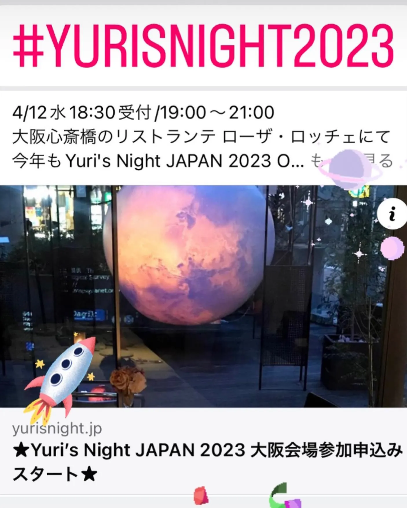 今年もYuri's Night JAPAN 2023 OSAKA開催‼️