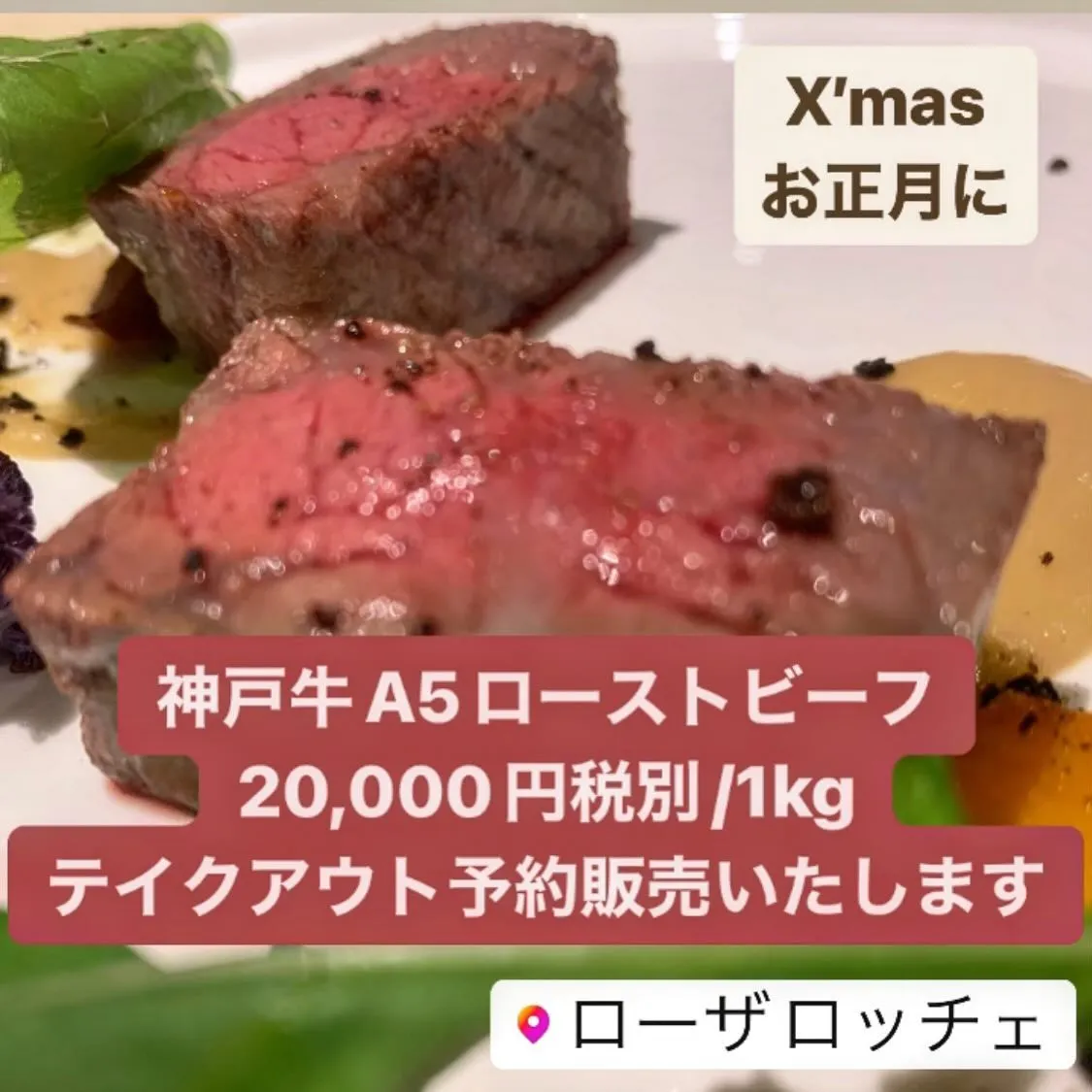 神戸牛A5ローストビーフ🐮テイクアウト予約販売いたします▶️税込21,600円/1kg