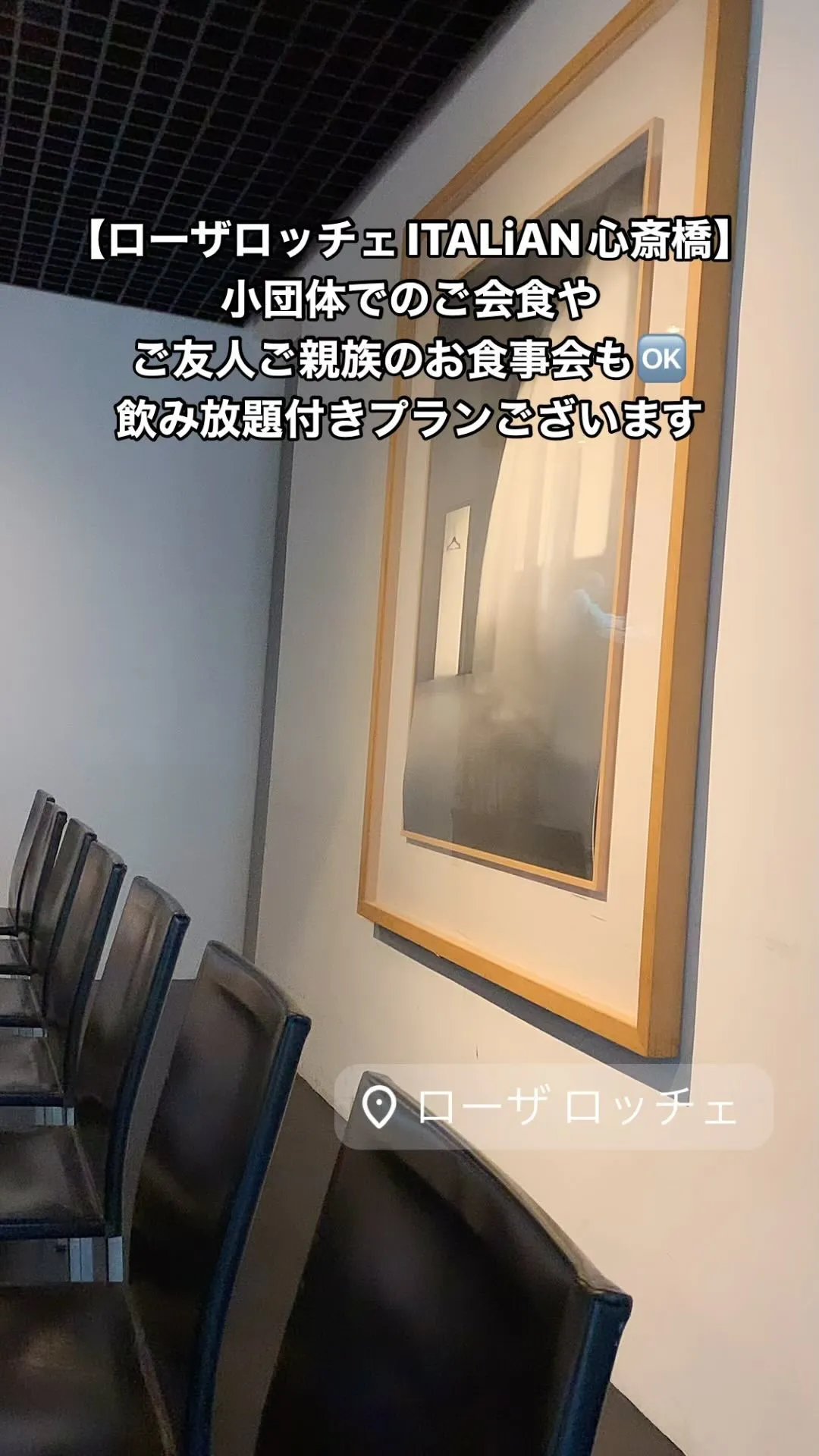 ローザロッチェitalian心斎橋 は心斎橋駅近の立地で、3... ローザロッチェitalian心斎橋は心斎橋駅近の立地で、30〜80名様の貸切パーティー(着席・立食/コース・ブッフェ)が可能です。ビジネスやご会合、懇親会などにご利用いただけます。🇮🇹お気軽にお問い合わせ…